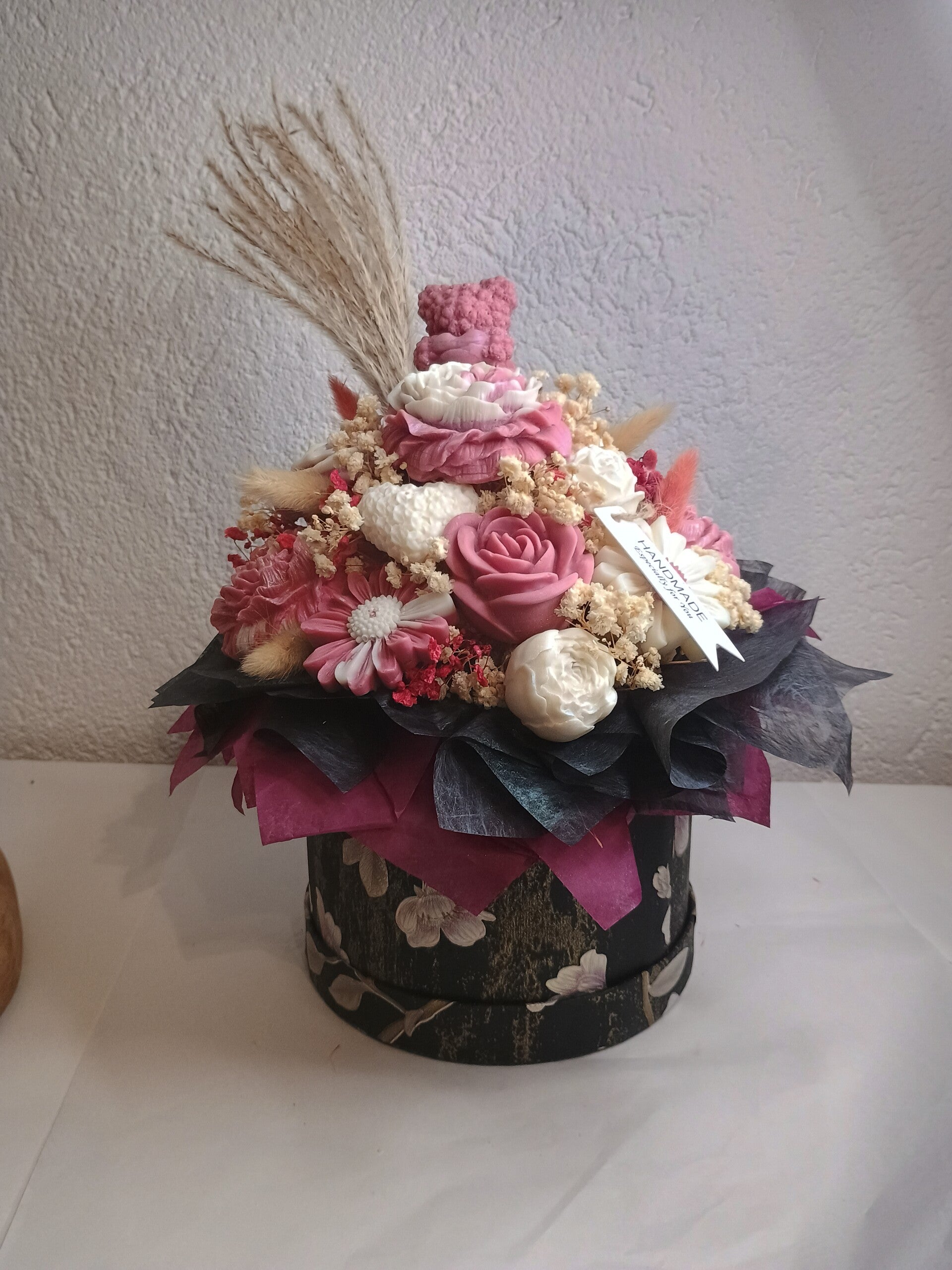 Die Box enthält ca. 7- 8 blütenförmige Kerzen mit einem wundervollen, natürlichen Blumenduft. Sie sind aus 100 % Sojawachs gefertigt.